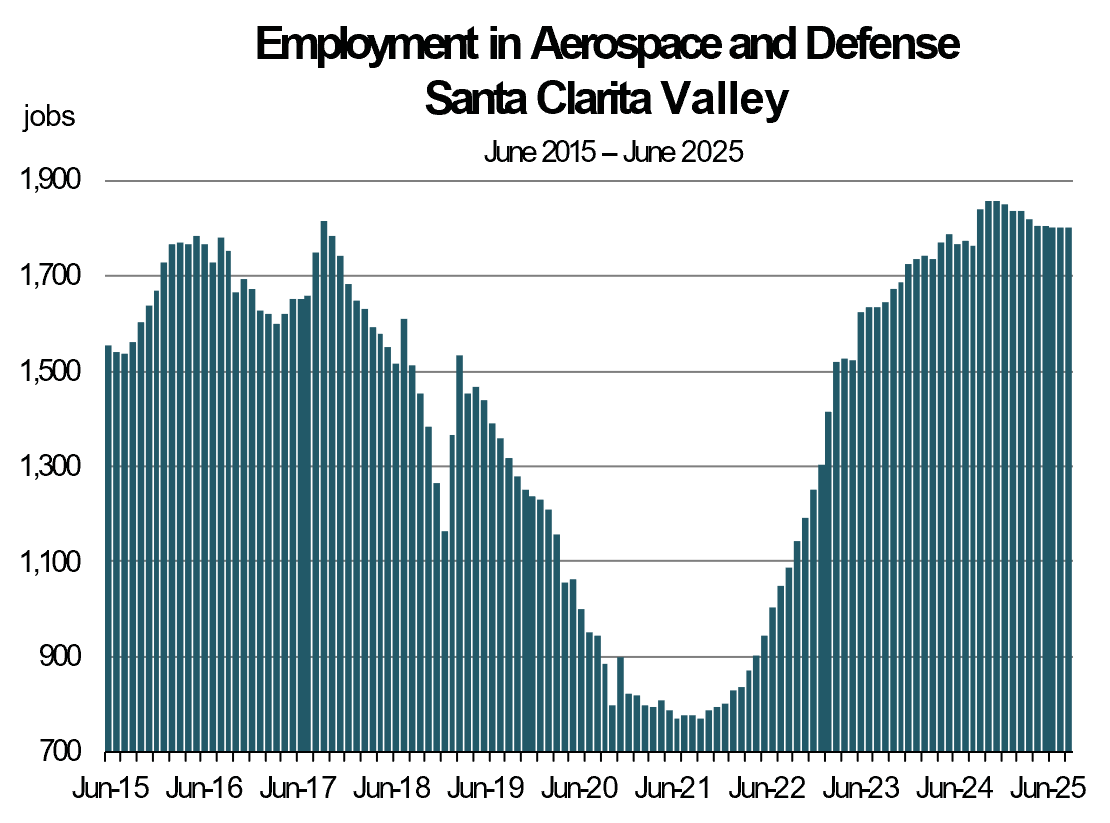 In the advanced manufacturing and aerospace arena, the SCV hosts numerous firms that are propelling growth. Companies such as Woodward HRT (up 49 employees from 2024's list), Aerospace Dynamics International, Fralock, and Crissair (to name a few) make the Valley a hub for cutting-edge aerospace production and engineering. Notably, employment in Aerospace & Defense soared in the last twelve months, reaching its highest level to date earlier this year, before stabilizing around 1,800 jobs in Q3 (just above its prior peak back in 2017). In total, the valley is home to nearly 8,000 advanced manufacturing jobs, accounting for about 40% of all local manufacturing employment. These include the production of everything from medical implants and pharmaceutical supplements to precision automotive and aerospace components. While manufacturing nationwide is becoming more automated, Santa Clarita’s firms have stayed competitive by leveraging technology and skilled talent. The presence of these high-tech manufacturers keeps the SCV economy innovative and resilient, providing stable, well-paying jobs.